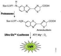 Promega recently launched a series of assays for the detection of chymotrypsin-like protease activity of the proteasome complex in cultured cells (Proteasome-Glo™ Cell-Based Assay) and for the measurement of the three proteolytic activities associated with the proteasome in an enzyme-based format (Proteasome-Glo™ 3-Substrate System). These homogeneous bioluminescent assays feature simple "add-mix-measure" protocols and greater sensitivity with linearity over 3 logs of cell number or 4 logs of proteasome concentration, and are ideally suited for measuring the chymotrypsin-like activity of the proteasome in cultured cells or screening of inhibitor libraries and monitoring proteasome-regulated protein degradation in cells.